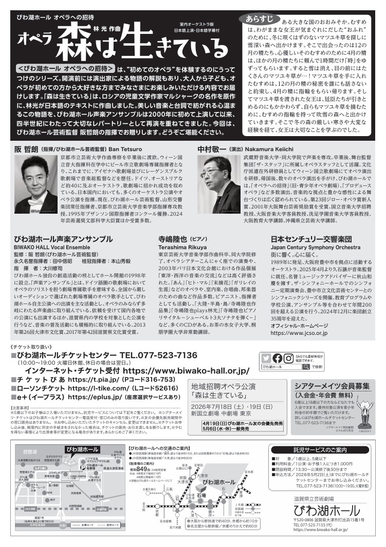 ※シアターメイツチケットのネット受付はございません。びわ湖ホールチケットセンター窓口・電話にてご購入ください(なお、友の会優先発売期間中は電話のみでの取り扱いとなります)。